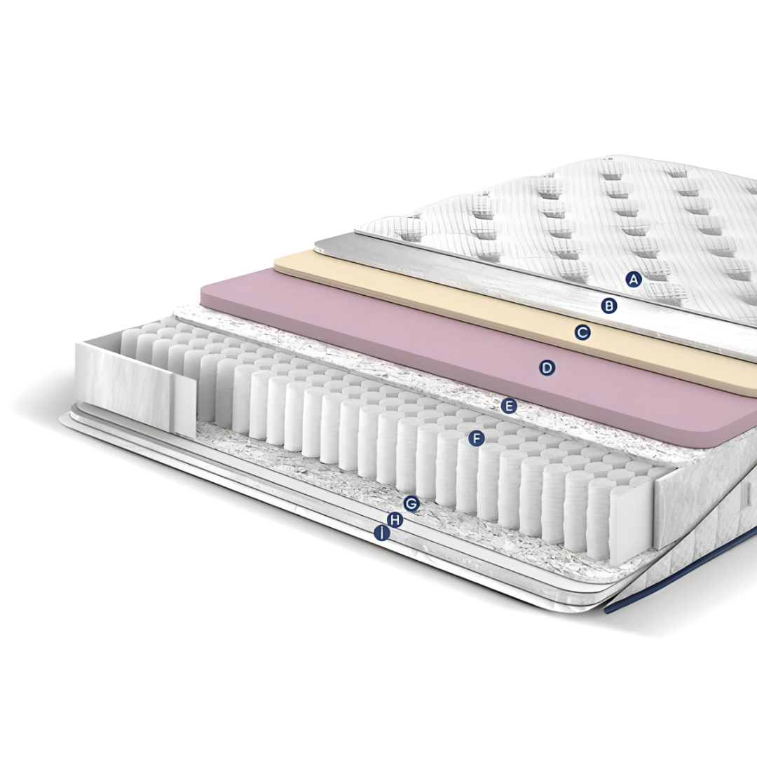 Her biri ayrı ayrı paketlenmiş ve bağımsız çalışabilen 7 bölgeli pocket yay dizilimiyle vücudun 7 farklı bölgesine doğru omurga desteği sağlarken, eşlerin birbirlerinin dönüş hareketlerinden etkilenmesini en aza indirir ve kaliteli bir uyku deneyimi sunar.